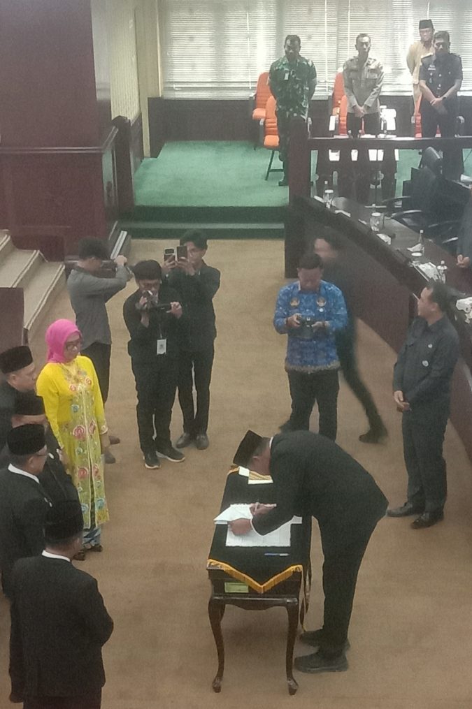 Rapat paripurna DPRD Kota Bekasi hadir Tri Adhianto selaku walikota Bekasi dan Abdul Harris Bobihoe selaku wakil walikota Bekasi, yang melakukan penandatanganan hasil reses anggota DPRD Kota Bekasi tahun 2024/2025, untuk pembangunan industri yang berlangsung selama tahun 2025 s/d 2025. (Maruap)